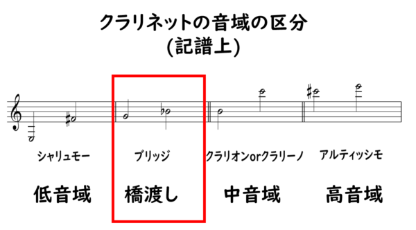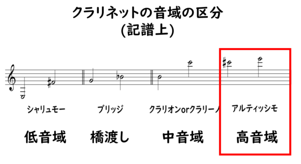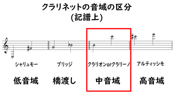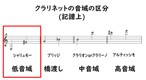 | クラリネットの音域の名称 | 音域 | 記譜上の音域 |