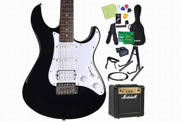 YAMAHAのパシフィカに、アンプやピック、シールド等が一緒になった、ギターをすぐに始められる初心者用セット。
