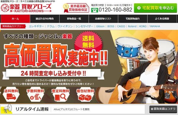 楽器買取アローズはギターをはじめとした弦楽器だけでなく、管楽器や打楽器などの楽器の査定にも対応している楽器買取店舗です。