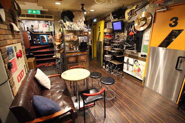 機材倉庫もあって大型の機材も次回の予約まで預かってくれるのでバンドの拠点に最適です。