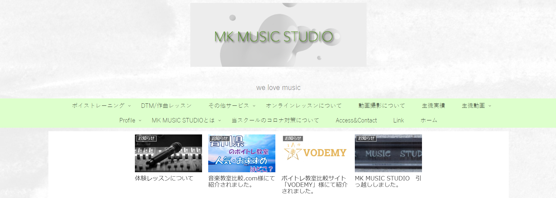 MK MUSIC STUDIOでは、基本発声、ビブラートなどの基本的なレッスンを大事に行っているボイトレ教室です。さらに楽しむことを忘れずに、初心者にも配慮しています。