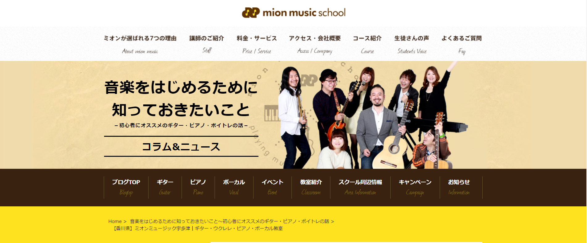 ミオンミュージックスクール宇多津教室は、多くのコースがあり充実していると人気のボイトレ教室です。小さいお子様から未経験のシニアまで、多くの方が通われています。
