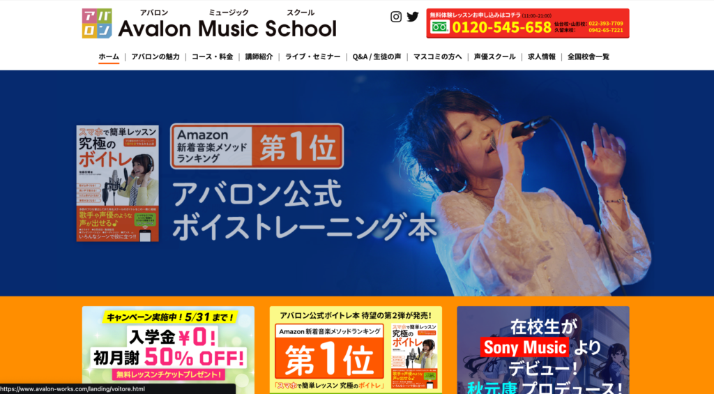アバロンミュージックスクールは、全国に13校も開校している本格ボイトレスクールで、Amazonの音楽書部門1位にもなったオリジナル公式ボイトレ本を元に指導を行ってくれます。