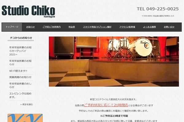 川越でバンド練習をするなら、先ほどご紹介した「スタジオi.M.O」か、この「スタジオチコ」のいずれかがオススメです。