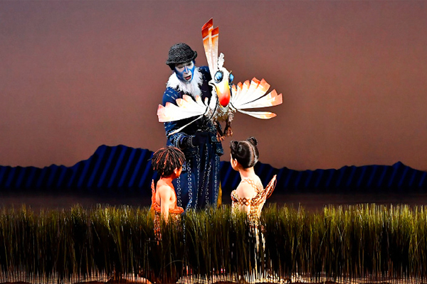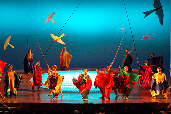 ミュージカルでは、コーラス隊が登場。バードカイトで空に鳥が舞う演出がされています。