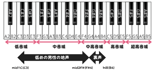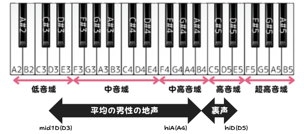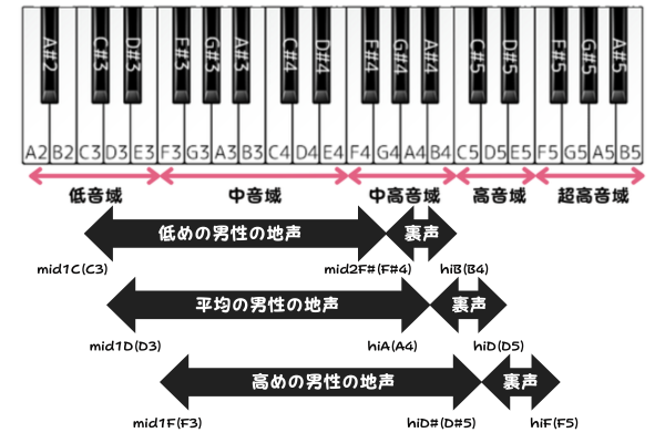 男性の音域といっても人によって生まれ持った声が全然違うので、一概にここからここまでと明言するのは難しいです。