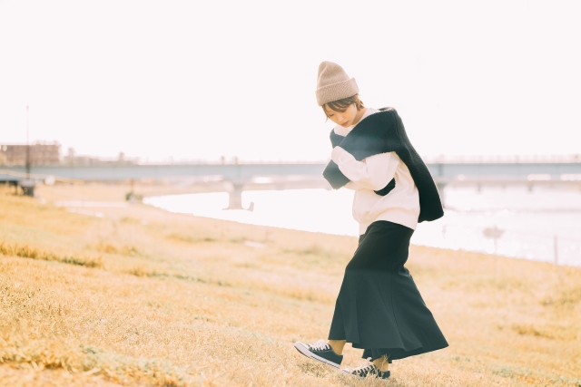 ニット帽にトップスもボトムスも大きめサイズのファッションのタイプへ、つい目を向けてしまうとのこと。