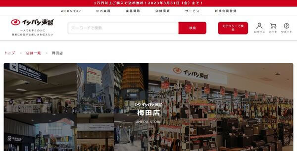 イシバシ楽器 梅田店は阪急梅田駅より徒歩1分の場所にあり、アコギやエレキギターなどさまざまな種類のギターを専門的に査定してくれます。