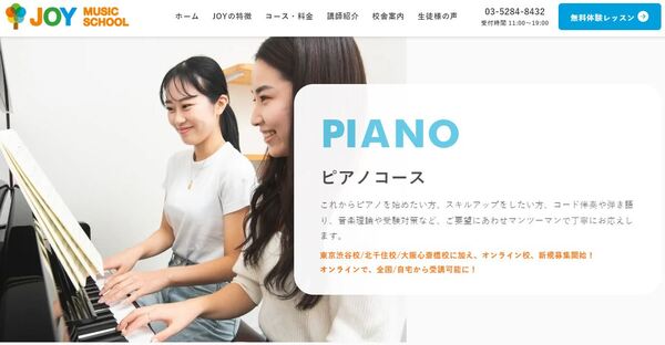 JOYミュージックスクールは関東と関西を中心に展開する音楽教室で、教室に通えない場合はオンラインレッスンを受けることもできます。