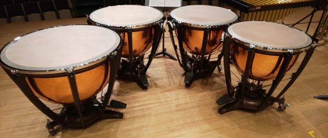 ティンパニは主に4つのインチ(大きさ)があり、それぞれに適した音域を考え、曲中でどの音をどのティンパニに割り当てるかを考えます。
