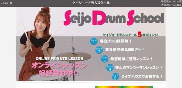 Seijo Drum Schoolは受講者の目的やペースに合わせたカリキュラムで、楽しくレッスンを受けられるアットホームなドラム教室です。