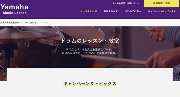 YAMAHA MUSIC LESSONはドラムをはじめとした楽器のスキルを身に付けられ、手厚いレッスンを受けられる音楽教室です。