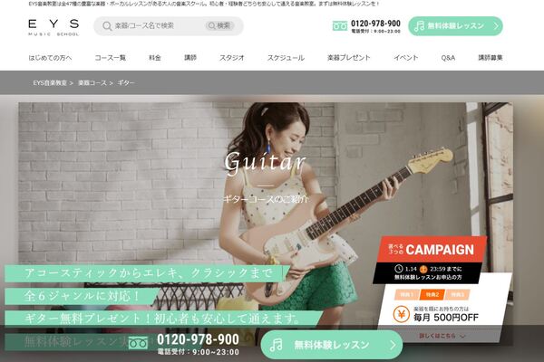 音楽といえば誰もが知る大手YAMAHAが経営している音楽スクールで、クラシックやジャズなど全4つのギターコースを開講しています。
