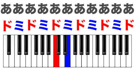 まずは歌いやすい音程で、「あああああああああああ」と声をまっすぐ出してみます。