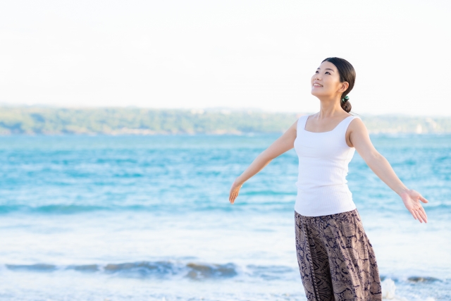 身体の隅々まで息を取り込んだら、ゆっくり時間をかけて息を吐き切ること。