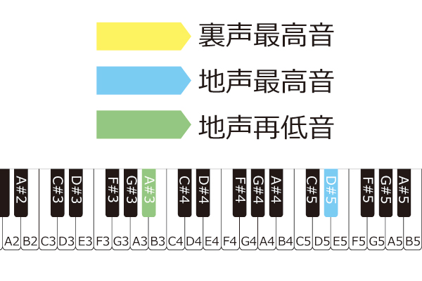 最高音がhiD#(D#5)なので、一般的な女性にとっては少し高めです。音域は広くないなので、キーの調整はしやすいです。高音が苦手な方は、男性であれば5~7つほど、女性であれば1~3つほどキーを下げるのがおすすめです。