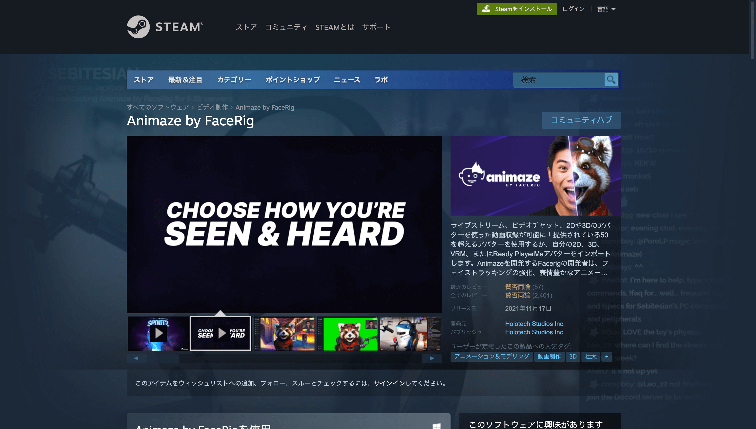 しかしFaceRig専用となっているため、あらかじめSteamよりFaceRigソフトを導入しておきましょう。