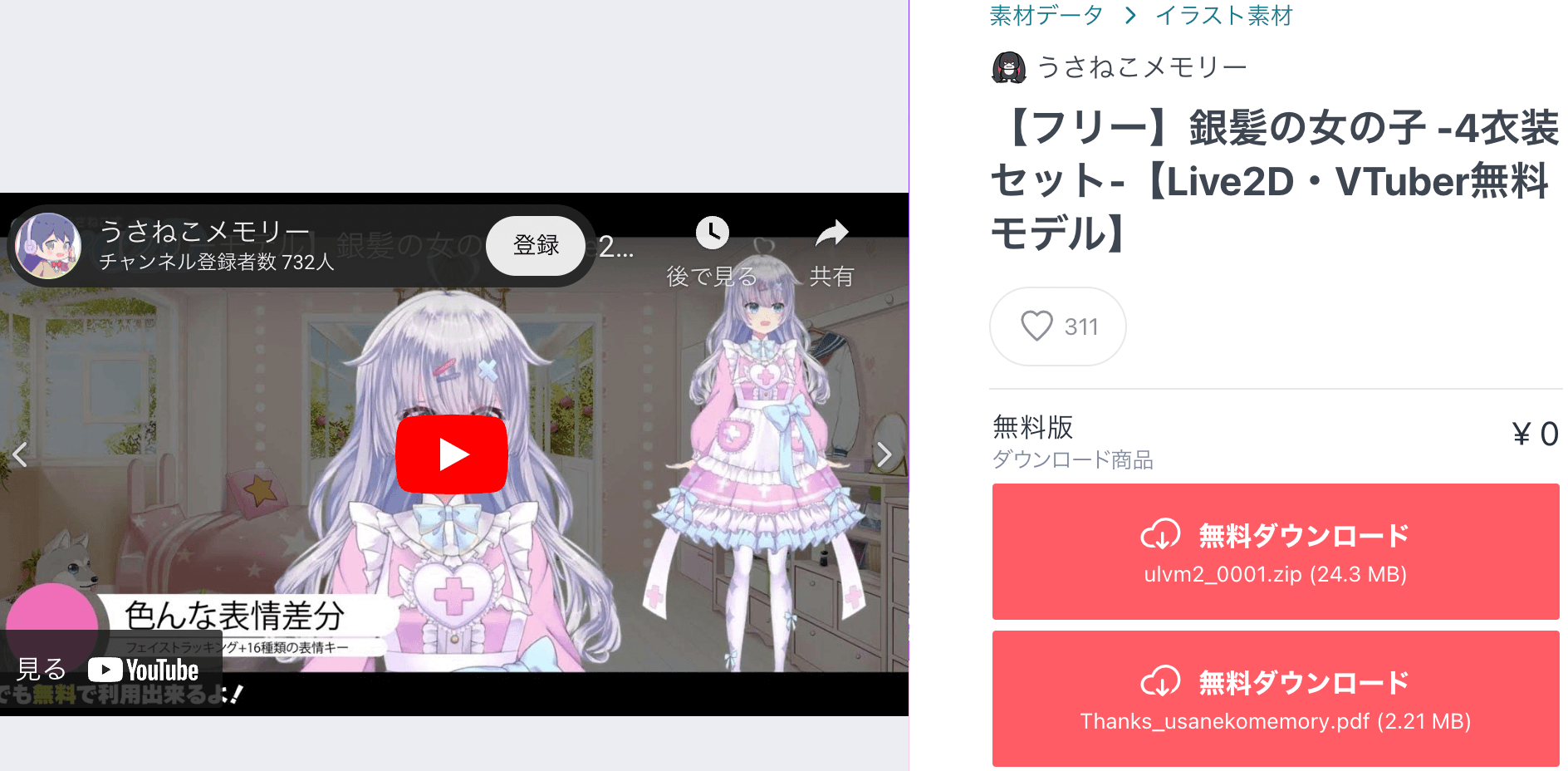 | ⑤ | うさねこメモリー | 銀髪の女の子 4衣装セット | BOOTH |