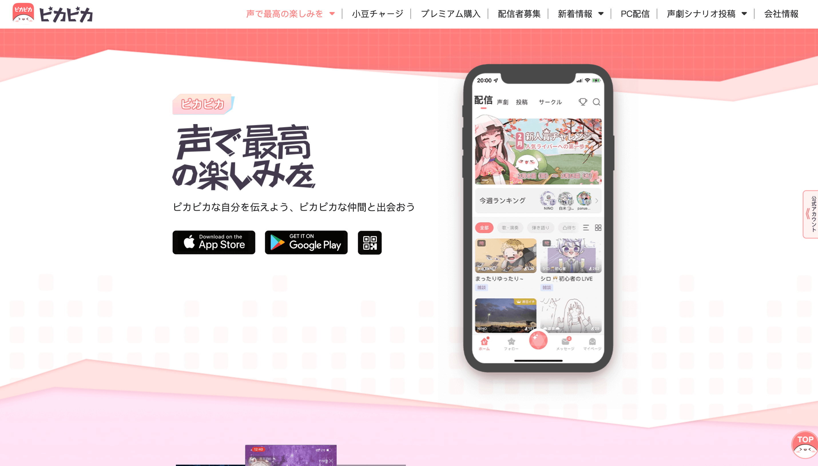 ピカピカは、音声のみの配信やバーチャルキャラクターを使ったライブ配信が行えるなど、ライブ配信に特化したスマホアプリです。