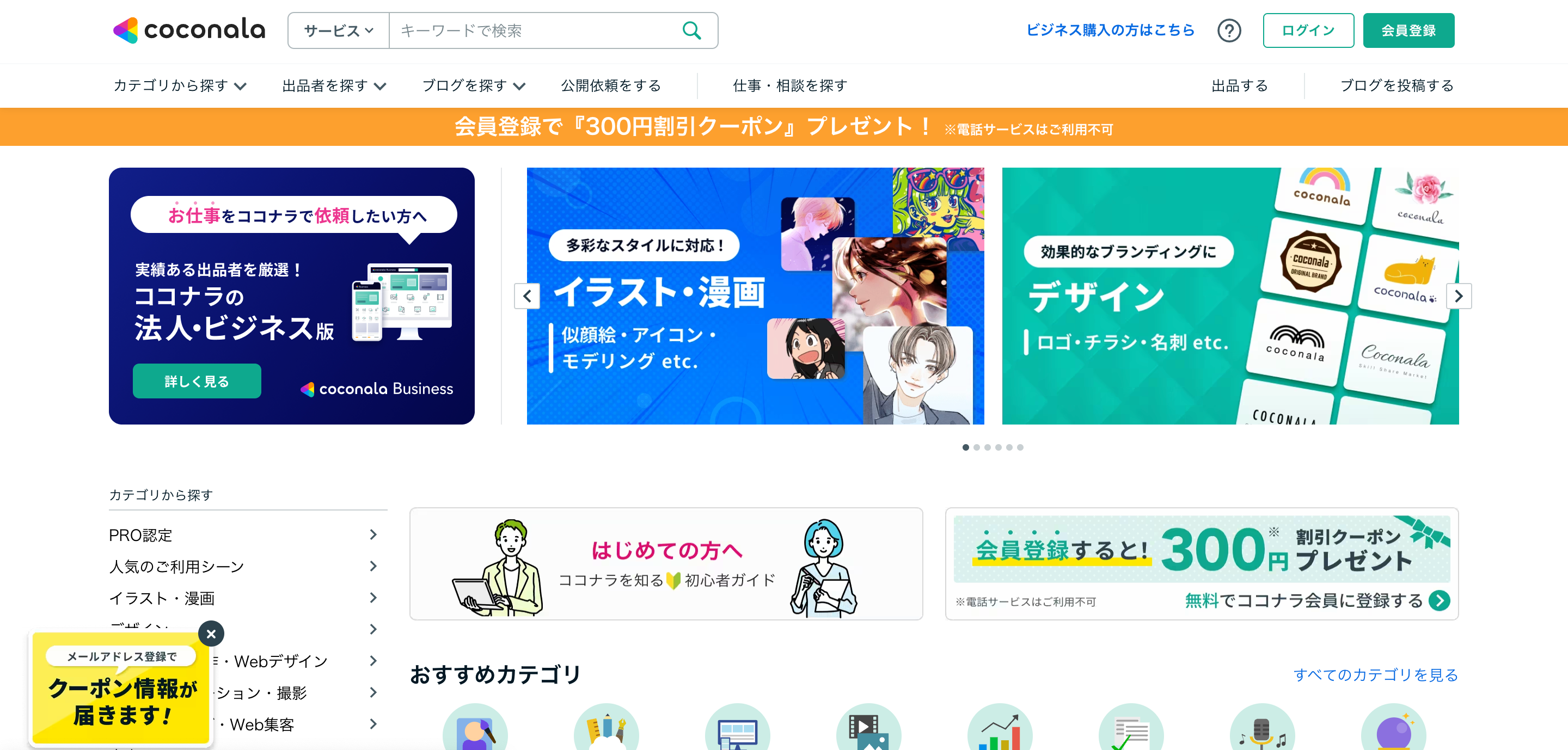 以下にて個人クリエイターに依頼できる人気のサービスを4つをご紹介していくので、ぜひ参考にしてみましょう。