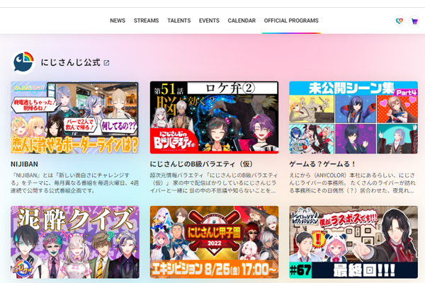 上記画像は、にじさんじに在籍しているVTuberのプログラムページです。