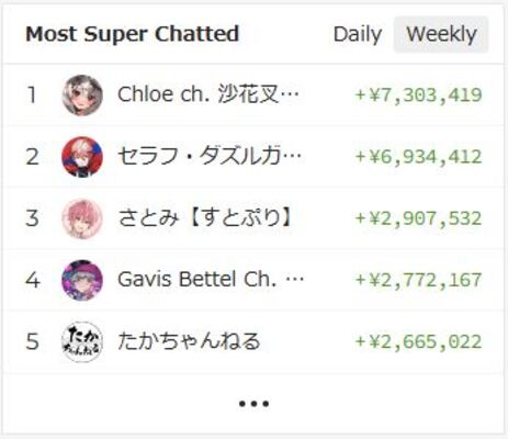 ここからはホロライブに所属するVTuberの、スパチャ集計ランキングを上位5名までご紹介します。