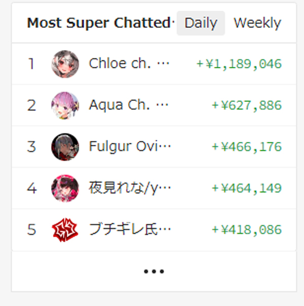 デイリーランキングは最大300名まで表示されるので、日本でスパチャを稼いだトップ300人を調べることが可能です。