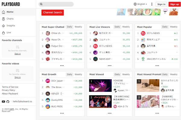 自分が気になるVTuberやYouTubeの収益情報を知りたい場合は、PLAYBOARDを利用すればこれまでの収益やスパチャで得た金額などを集計できます。