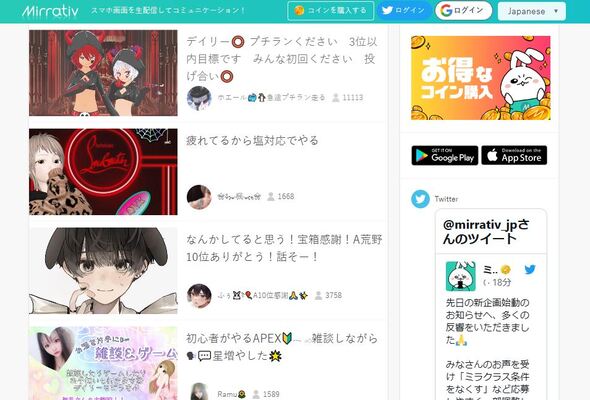 Mirrativは、アバターを使ってゲーム配信を行えるツール。