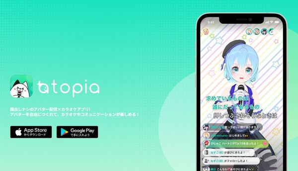 topiaは、3Dアバターを用いてカラオケ配信が可能なツール。