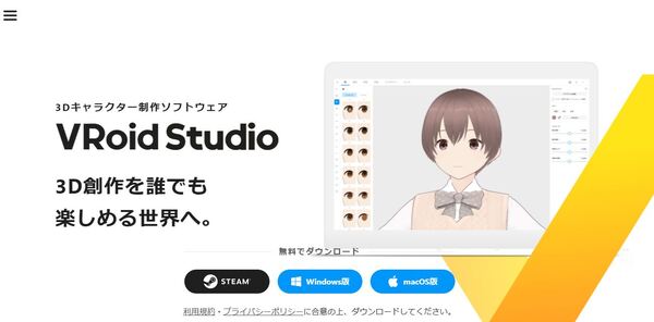 VRoid Studioは完全無料かつ操作も簡単なので、初心者におすすめのツール。