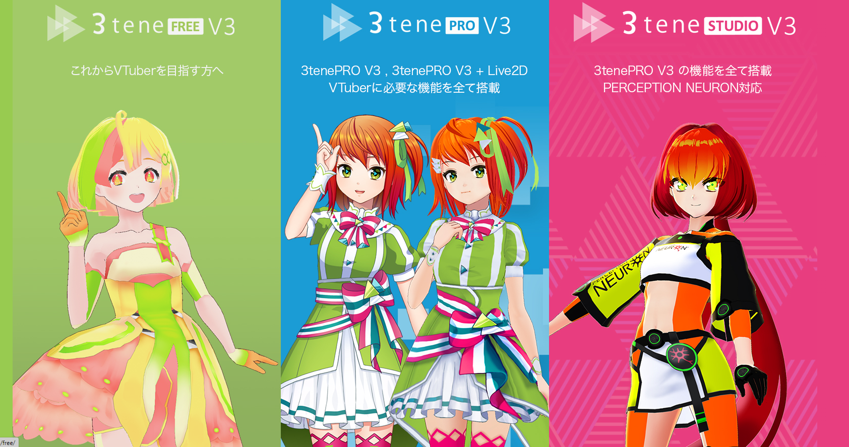 有料版で「3tenePro」や「3tenePro+Live2D」があり、VRやLive2Dにも対応できます。